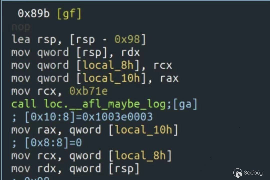 相比于傳統的Grammar Fuzzer, CGF Fuzzer在每輪變異樣本的輸入運行后,會評估該樣本是否觸及了更多的代碼塊,從而決定是否保留它進而進行更深度的變異,從而自動構建輸入樣本的格式。以AFL為例,在x86形式下,其核心插樁代碼邏輯如下所描述:
