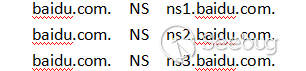 這三條記錄,就是說http://ns1.baidu.com、http://ns2.baidu.com、http://ns3.baidu.com(以下簡稱ns1、ns2、ns3)都是http://baidu.com域的權威DNS,詢問任意其中一個都可以。