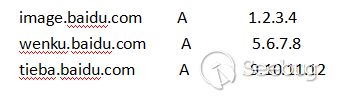 A記錄就是最經典的域名和IP的對應,在http://ns1.baidu.com里面,記錄著百度公司各產品的域名和IP的對應關系,每一個這樣的記錄,就是一個A記錄,比如下面的3個A記錄: