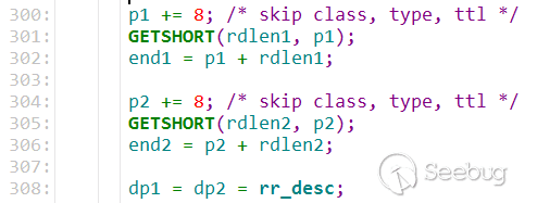 行315,首先調用get_rdata()函數解析第一個資源記錄p1的RDATA域中的NameServer,看下該函數實現。