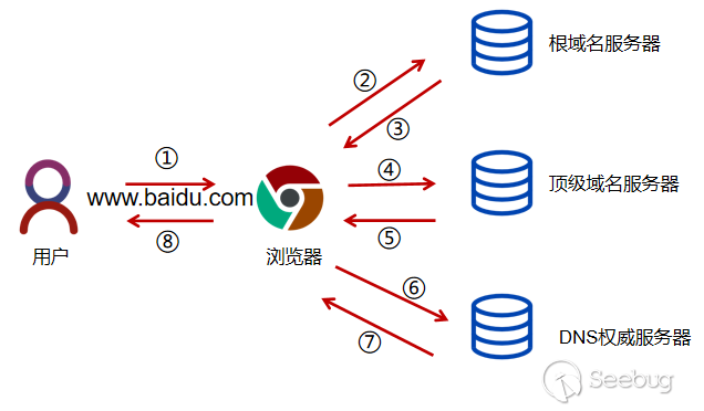 當訪問www.baidu.com時,域名解析的大致流程如下圖所示。