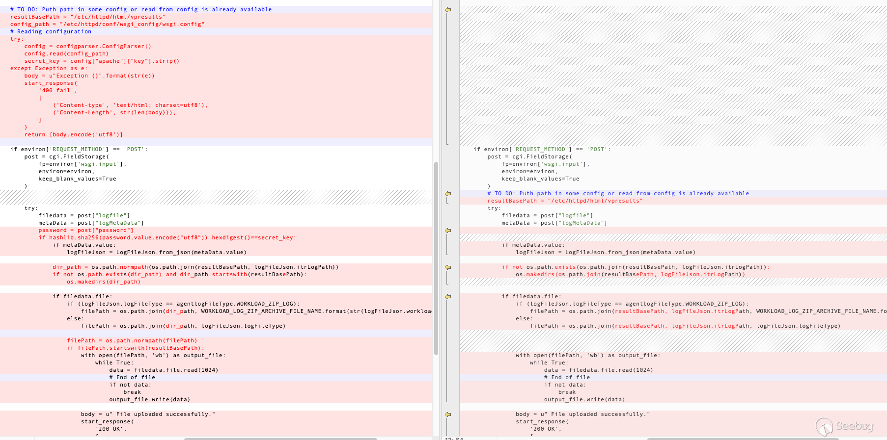 加入了個password參數也就是使用loguplaod這個端點需要密碼才可以訪問,但取的secret_key來自于wsgi.config,硬編碼值為:vmware-viewplanner-ca$hc0w,有點掩耳盜鈴的味道;