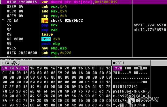 這里PE文件來自于.eps文件中的內容,與老版本不同的是,老版本是直接寫在.eps中只需要添加MZ即可,這里是通過XOR 0x16082019的計算后得出,每四字節與key 0x16082019 進行異或計算