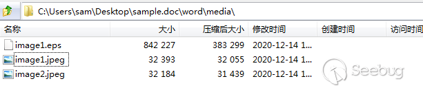 .EPS惡意代碼存放在Word中的\word\media\目錄下,7z打開.doc文件拖出來即可