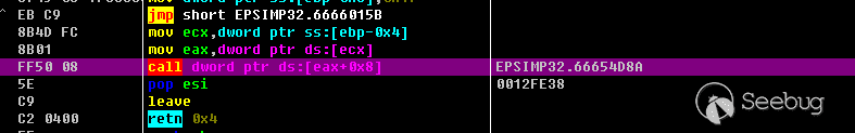 加載后在4011EE地址處下斷,F7步入,Alt+M找到EPSIMP32的加載基址