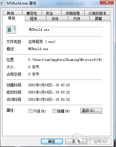 創建文件“C:\Users\sam\AppData\Roaming\Microsoft\Windows\Start Menu\Programs\Startup\MSBuild.exe”