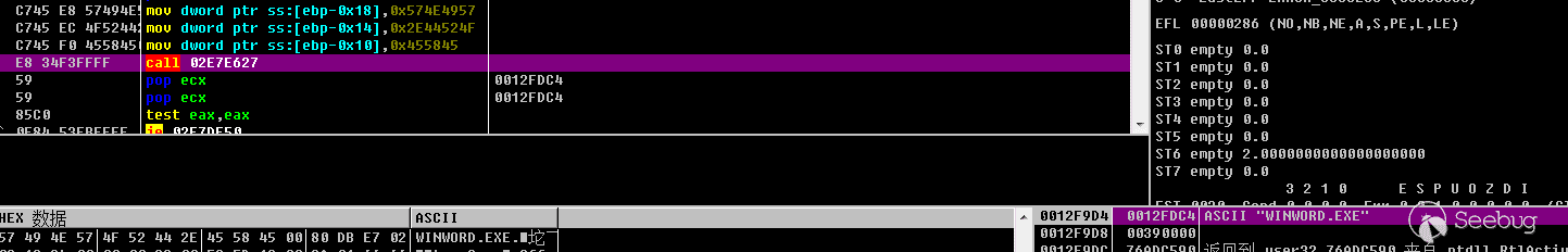 在調試的時候發現,Word文檔的.EPS和韓國HWP的.EPS調試好像不太一樣,韓國的HWP可以直接用cerbero_suite_advanced將其中的Shellcode解壓出來,但是Word文檔不行。