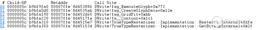 當復合字形?(AE,HTML實體Æ,U + 00C6)被柵格化時,函數DWrite! fsg_ExecuteGlyph崩潰,調用棧如下: