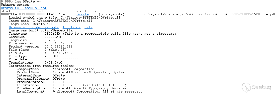 Microsoft DirectWrite是用于高質量文本呈現的現代Windows API。它的大部分代碼位于DWrite.dll用戶模式庫中。它用作各種廣泛使用的桌面程序(例如Windows上的chrome,Firefox和Edge)的字體光柵化程序。