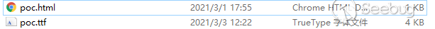 1.將POC文件與poc.ttf放在同一目錄下,使用chrome打開poc.html文件。