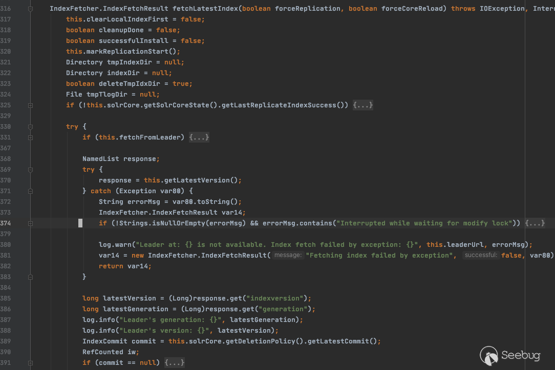 在此方法中,首先去請求目標 URL 的 Solr 實例,接著對于返回值的 indexversion 和 generation 進行判斷: