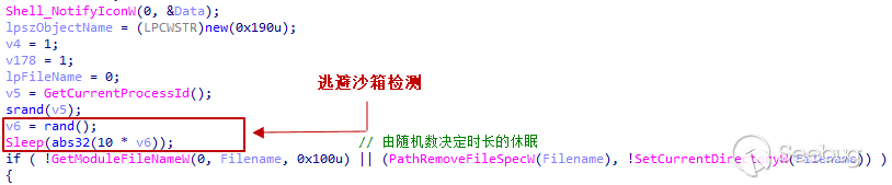 - 1)初始化 首先,后門執行的初始階段會隨機休眠30秒至120秒以嘗試繞過沙箱檢測。