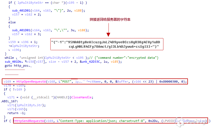 最后,后門使用HTTP POST方法,將加密后的數據發送給C&C服務器。數據采用簡單的JSON格式,具體如圖3-41所示。
