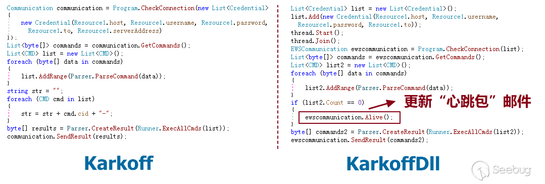 攻擊者最終可能植入兩類后門木馬,分別使用了不同的隱匿隧道通信技術來實現敏感信息的傳輸:EWS隧道技術(KarkoffDll)和HTTP隧道技術(SideTwist),下文分別對這兩類樣本及其使用的通信技術進行深入分析。