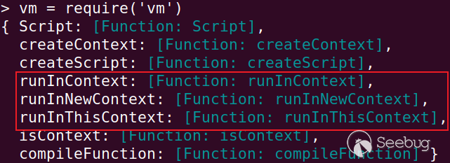 根據官方文檔,這三個函數都有一個參數 contextObject 用來表示上下文。但是這個上下文并不是完全隔離地運行的,可以通過原型鏈的形式實現沙箱逃逸。