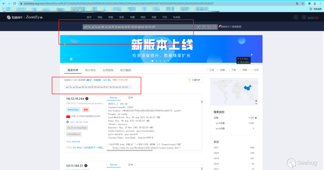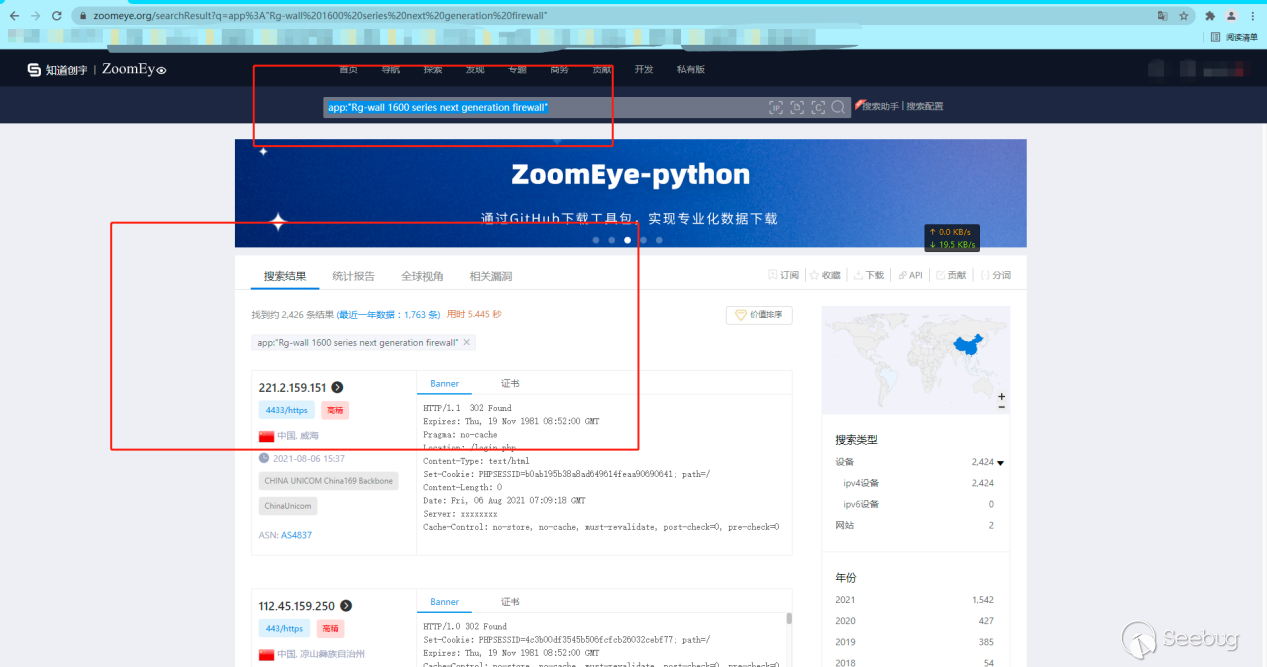 利用ZoomEye ssl證書搜索挖掘銳捷安全產品線下的防火墻banner