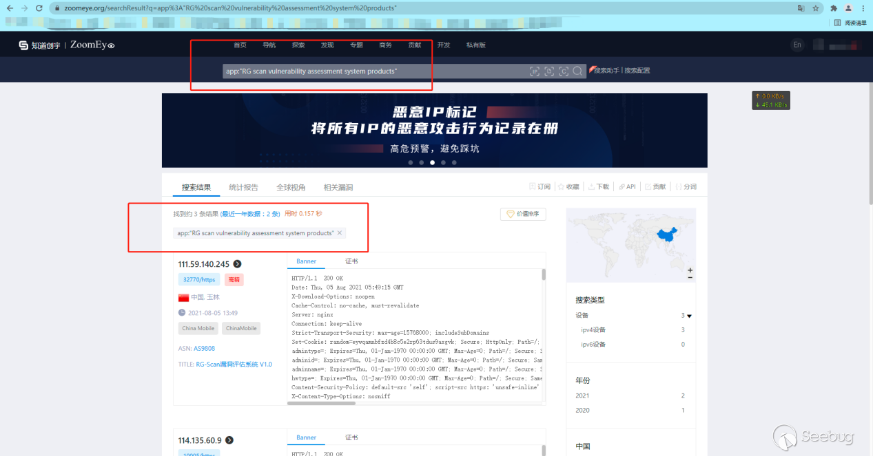 隨便找個安全產品在ZoomEye挖掘一下banner數據。