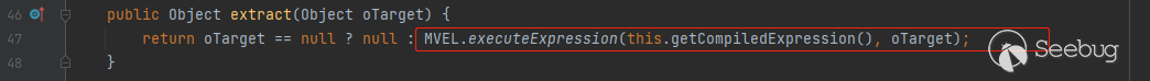 MvelExtrator 中的 extract 方法,會執行任意一個 MVEL 表達式(RCE):