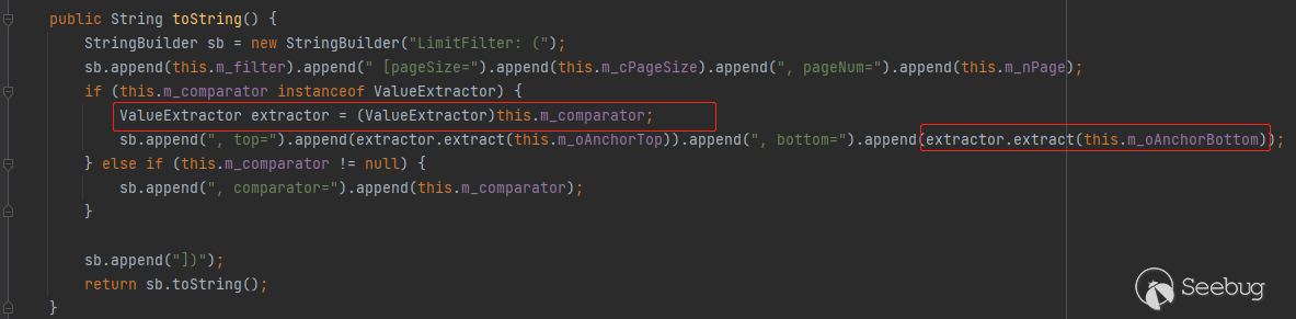 Limitfiler 中 Limitfiler.toString 中存在任意 ValueExtractor.extract 方法調用: