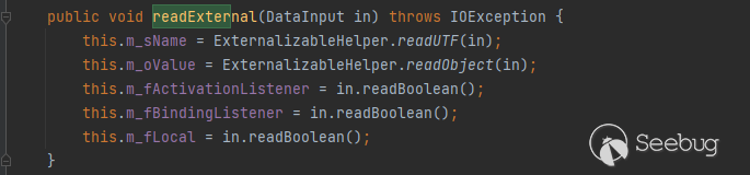 在 ExternalizableHelper 利用鏈架構中,這個危險的中間節點就是 ExternalizableLite.readExternal 方法。
