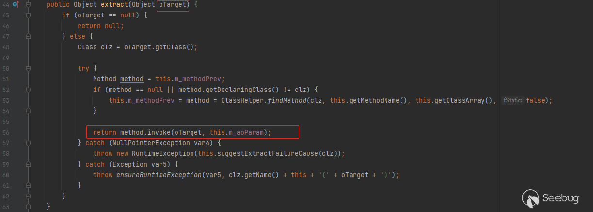 ReflectionExtractor 中的 extract 方法含有對任意對象方法的反射調用: