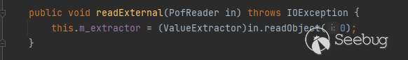 在ExtratorComparator.compare 中存在任意(因為 this.m_extractor 參與序列化和反序列化) ValueExtractor 的 extract 方法調用。
