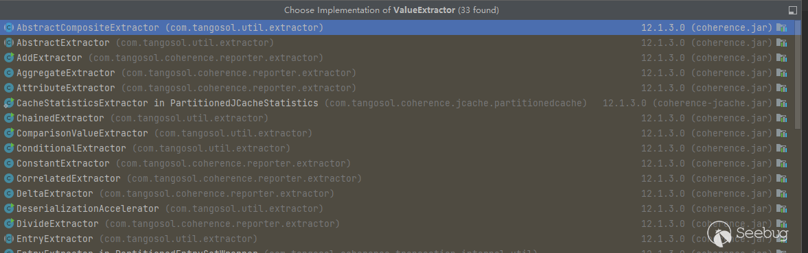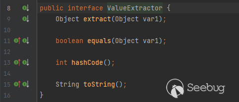 這個接口中聲明了一個 extract 方法,而 ValueExtractor.extract 正是 Coherence 組件歷史漏洞( ValueExtractor.extract 鏈部分 )的關鍵。