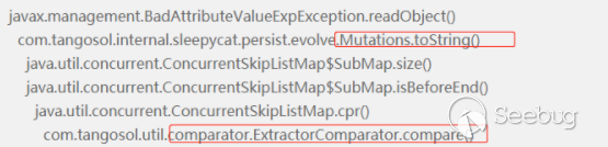 另外在 weblogic 中, BadAttributeValueExpException.readObject 中也可以實現調用任意 compartor.compare方法: