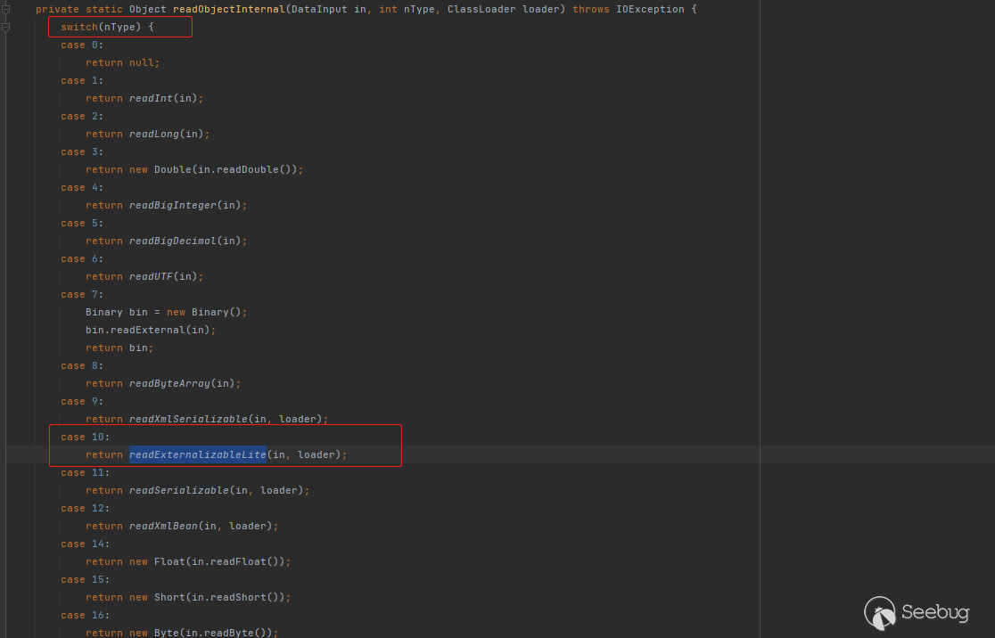 readObjectInternal 中會根據傳入的中 nType 進行判斷,進入不同的分支: