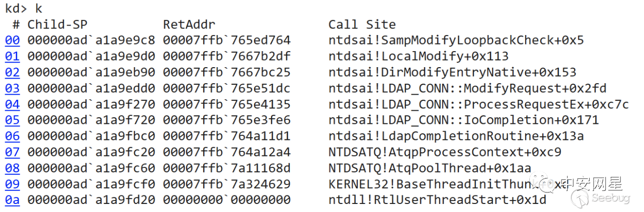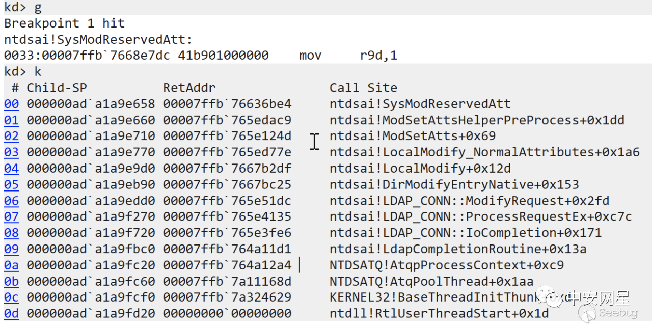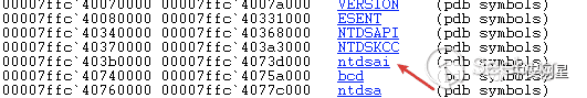 使用lm列出模塊,可以看到lsass進程中加載了ntdsai.dll,表明此時我們可以訪問ntdsai.dll對應的內存了