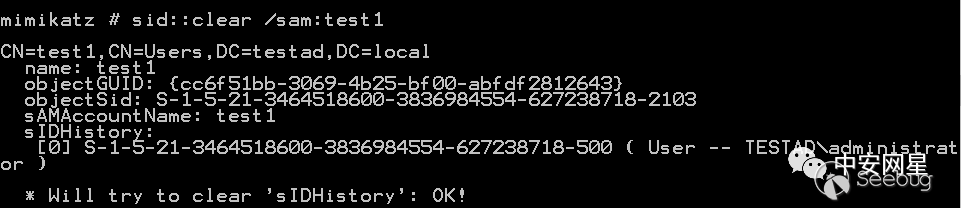 原理就是使用ldap_modify_s()將目標對象sIDHistory屬性修改為空