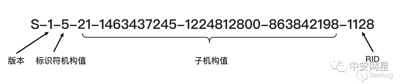 - “1128”為相對標識符(RID),如域管理員組的RID為512