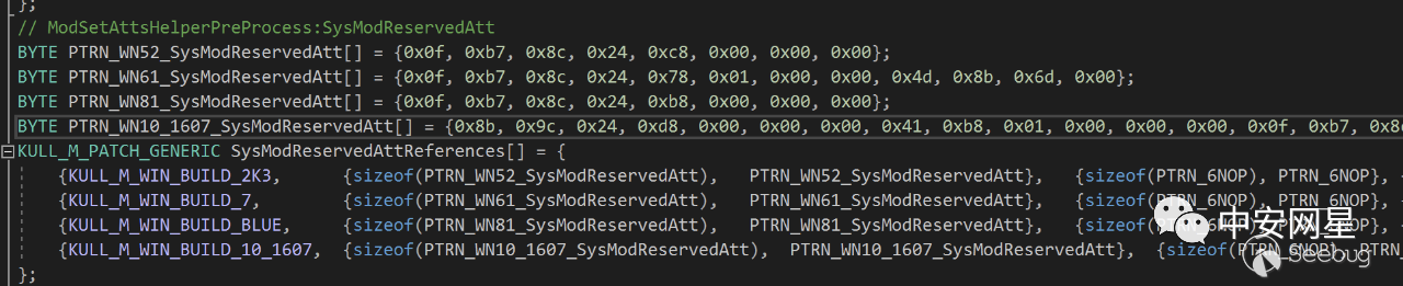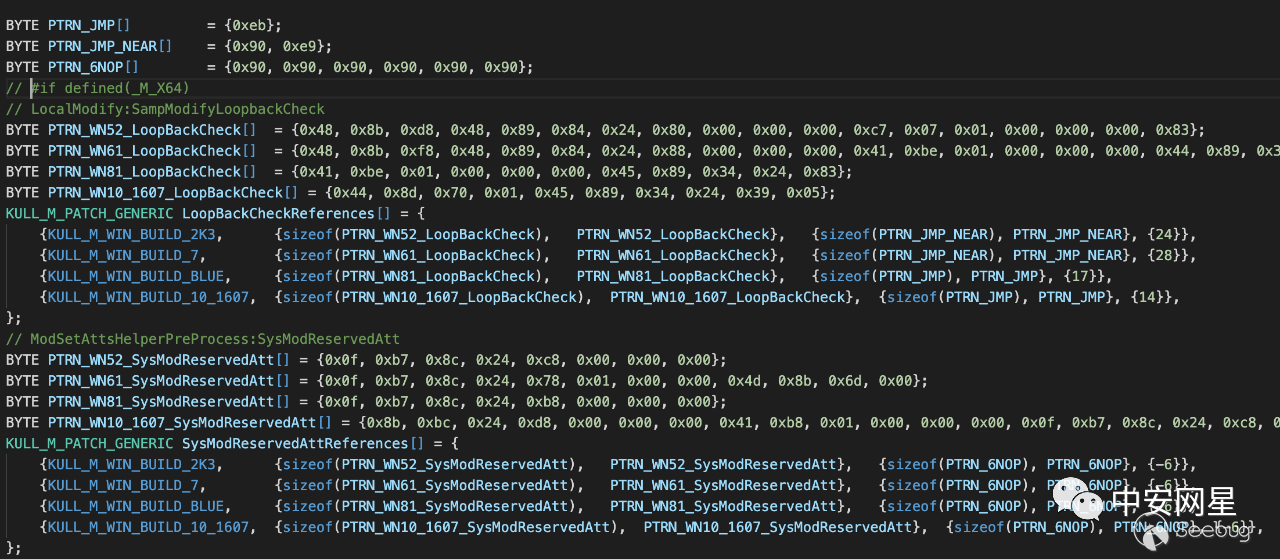 mimikatz正是使用這種方法,其在內存中搜索的標記在代碼中有明確的體現: