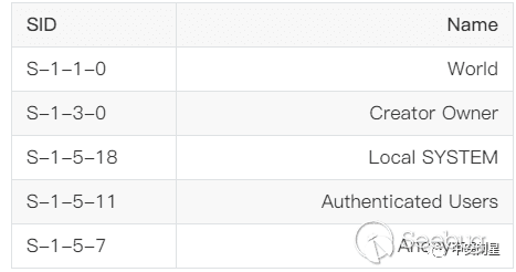 Windows也定義了一些內置的本地SID和域SID來表示一些常見的組或身份