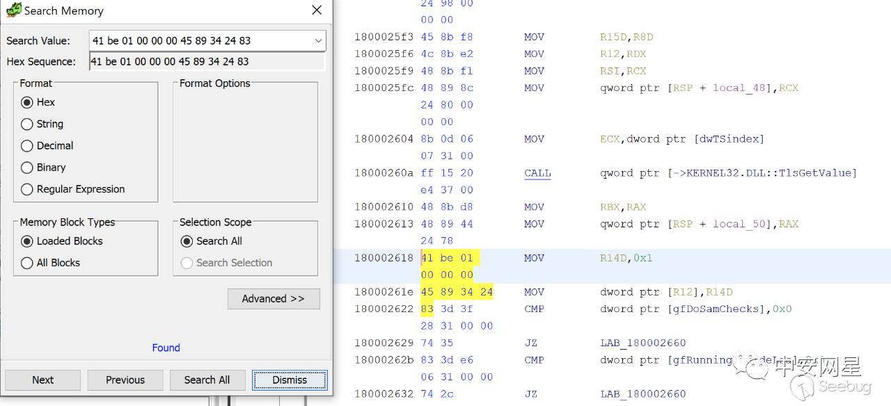 我們將域控的ntdsai.dll拿回本地分析,在其中搜索標記41 be 01 00 00 00 45 89 34 24 83