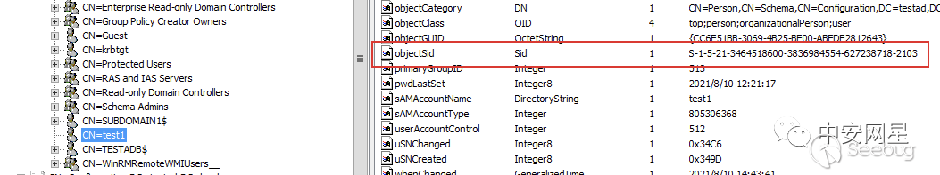 在AD域中,SID同樣用來唯一標識一個對象,在LDAP中對應的屬性名稱為objectSid: