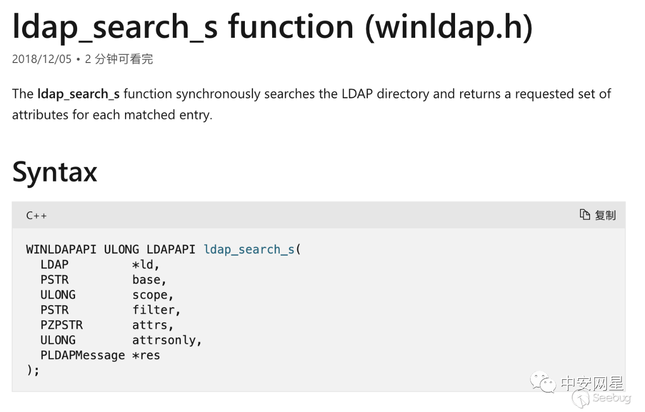 其核心是調用Windows一系列的LDAP操作API,主要是ldap_search_s():