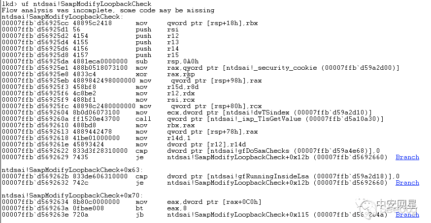 我們直接查看SampModifyLoopbackCheck()函數在內存中的反匯編