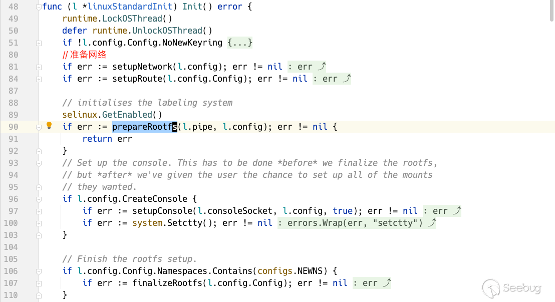 RunC通過命令 runc create + runc start 或 runc run 啟動一個容器, runc create 主要分為兩部分,一部分是準備容器進程的啟動參數,與真正實施容器 runc init 進程進行交互,保證容器初始化順利進行;另外一部分是執行克隆出的 runc init 進程,加入各種namespace并初始化容器進程的執行環境。本文以第二部分為切入點進行分析,從 libcontainer/standard_init_linux.go 的 linuxStandardInit.Init() 開始,在其中調用 prepareRootfs ,準備初始化rootfs并進行掛載。