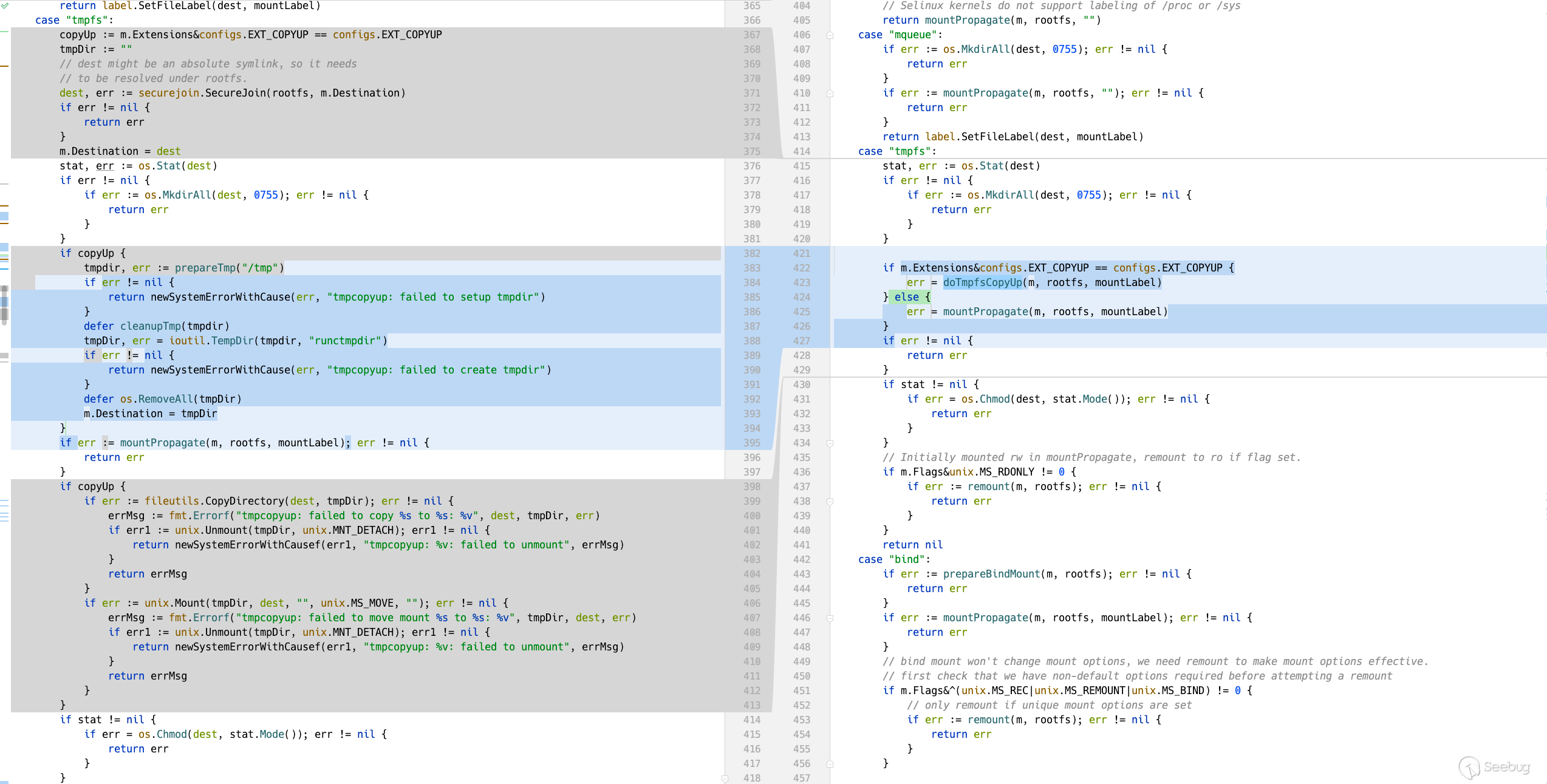 在補丁中,可以看出在tmpfs的掛載邏輯中,增加了 doTmpfsCopyUp 函數。
