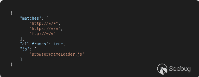 BrowserFrameLoader.js會被直接插入到http、https、ftp三個域內,由于all_frames,還會被直接插入到頁面內的每一個iframe子框架下。