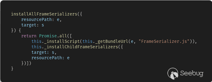 這段代碼主要通過函數_getBundleUrl來生成要安裝的js地址,而其中的e來自于resourcePath參數,這里本身應該通過傳入形如chrome-extension://...這樣的路徑,以生成所需要的js路徑。
