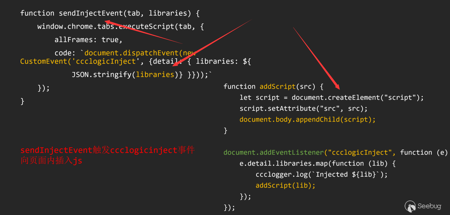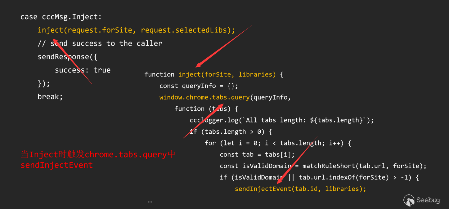 反之,我們也可以從利用的角度思考,popup/bg script沒辦法直接和頁面溝通,換言之,也就是說如果在popup/bg script中存在可以被利用的點,一定是來源于相應的惡意函數。