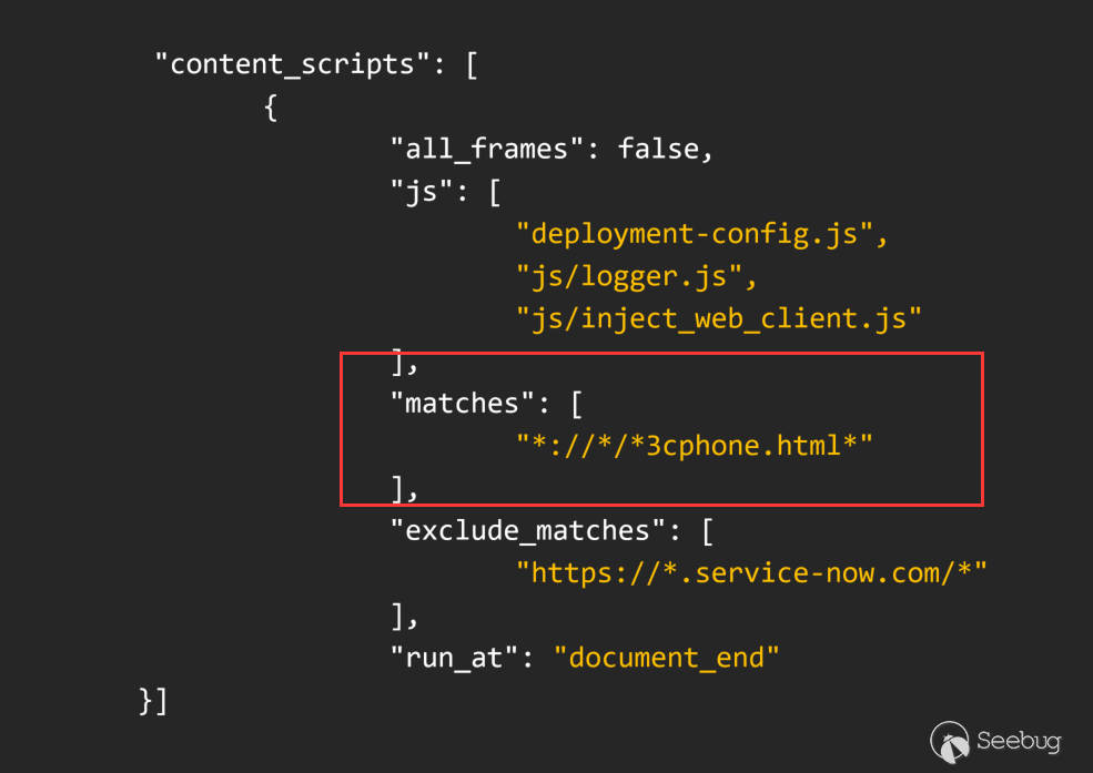首先我們從manifest開始,存在問題的js是content js.