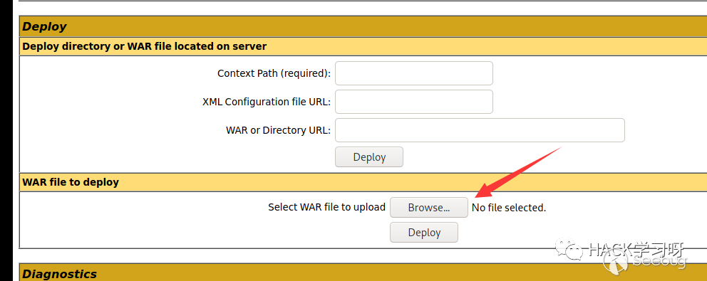 看到這里有一個上傳war包的地方,這里很多java的中間件都可以用war遠程部署來拿shell,tomcat也不例外