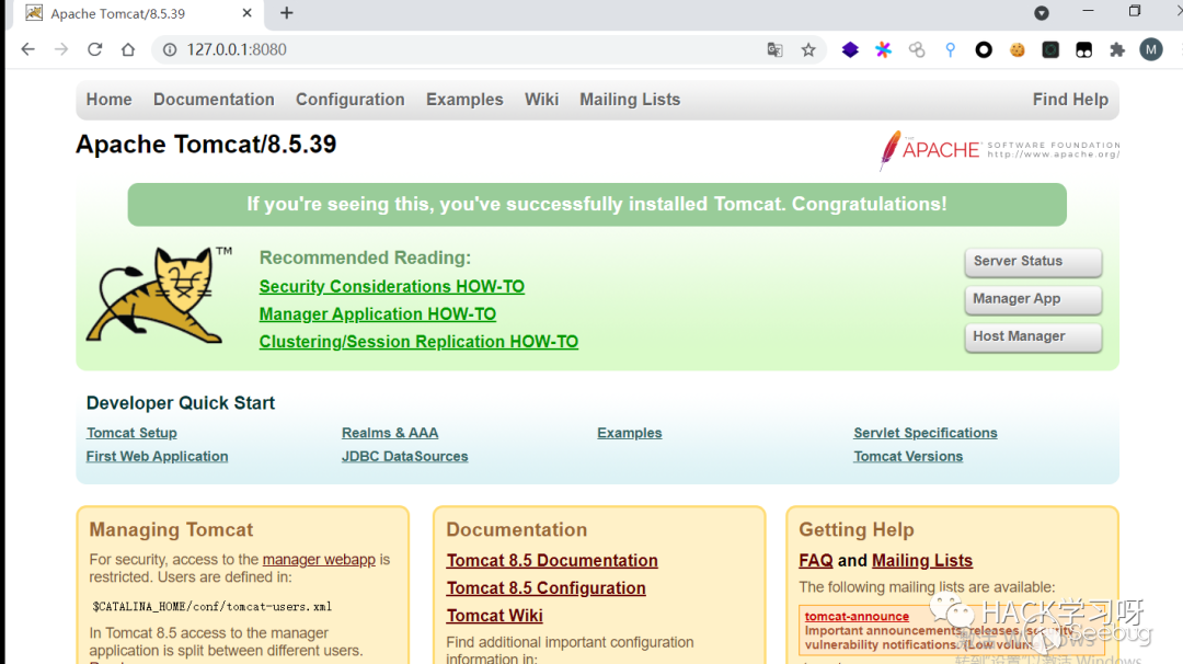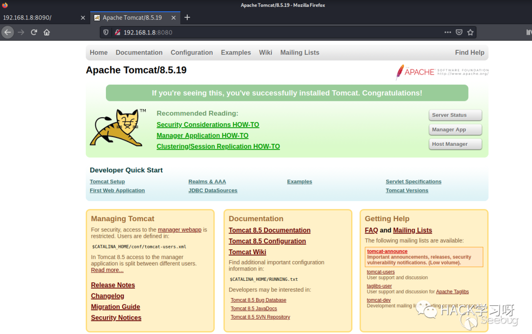 訪問下8080端口,對應的是Tomcat 8.5.19