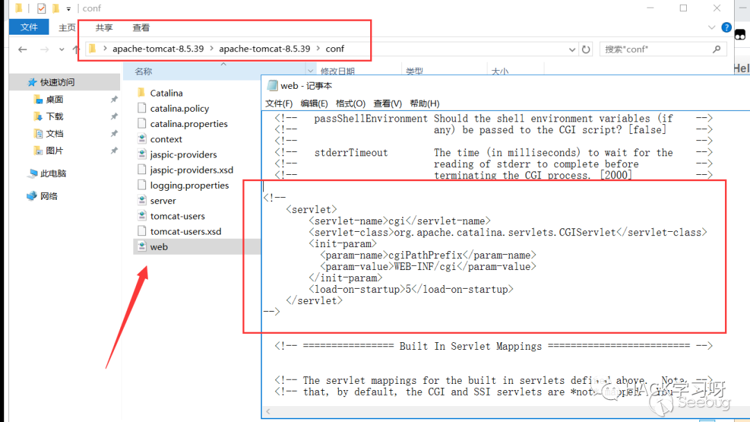 然后在conf/web.xml中啟用cgi的 servlet-mapping
